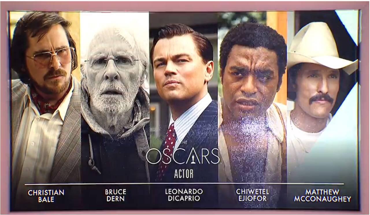 Leonardo DiCaprio (El Lobo de Wall Street "The Wolf of Wall Street") 4ta nominación, la 2ra bajo la dirección de Martin Scorsese